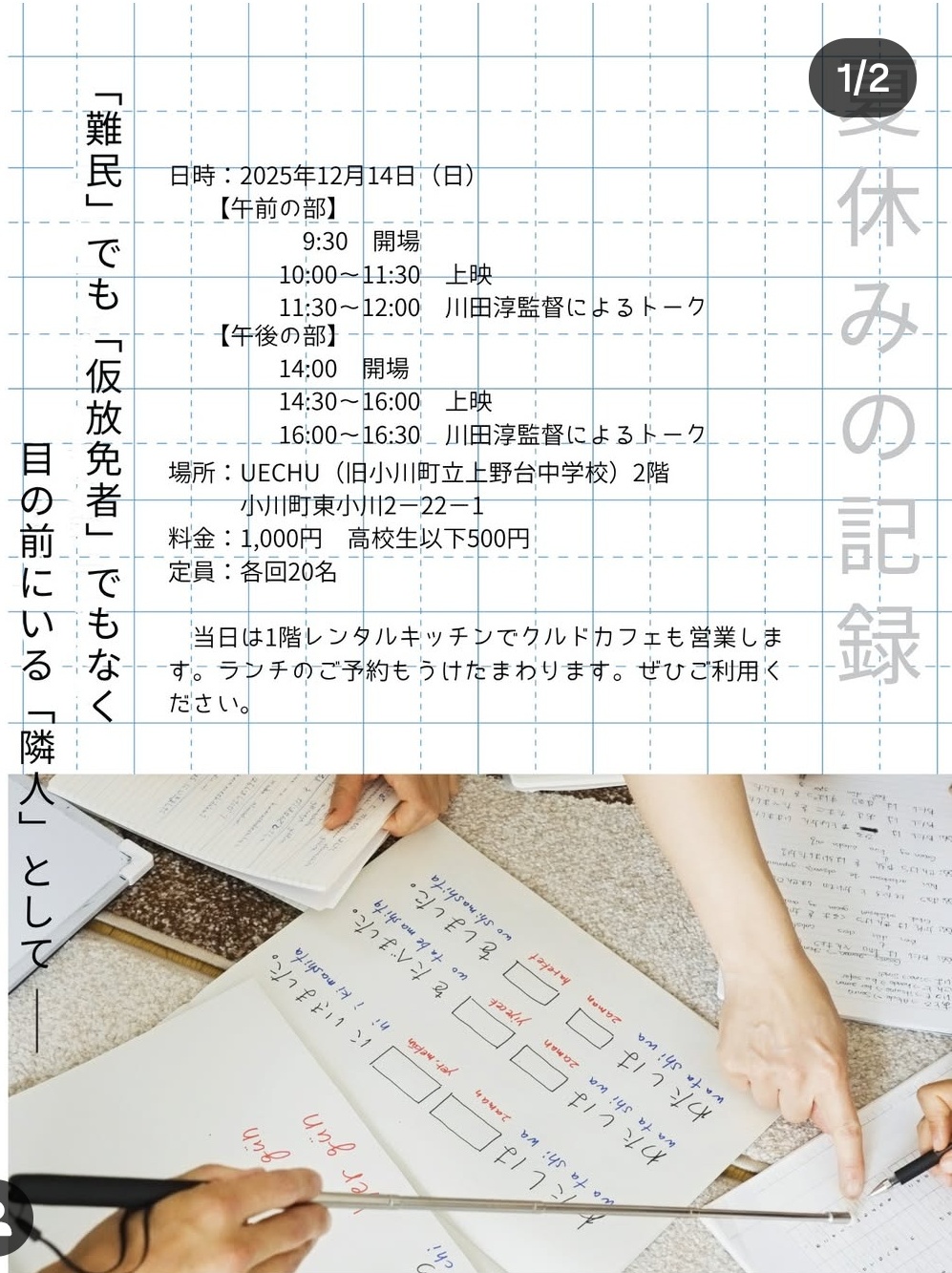 12月14日(日) UECHU(旧小川町立上野台中学校)にて、映画「夏休みの記録」上映会を開催します。