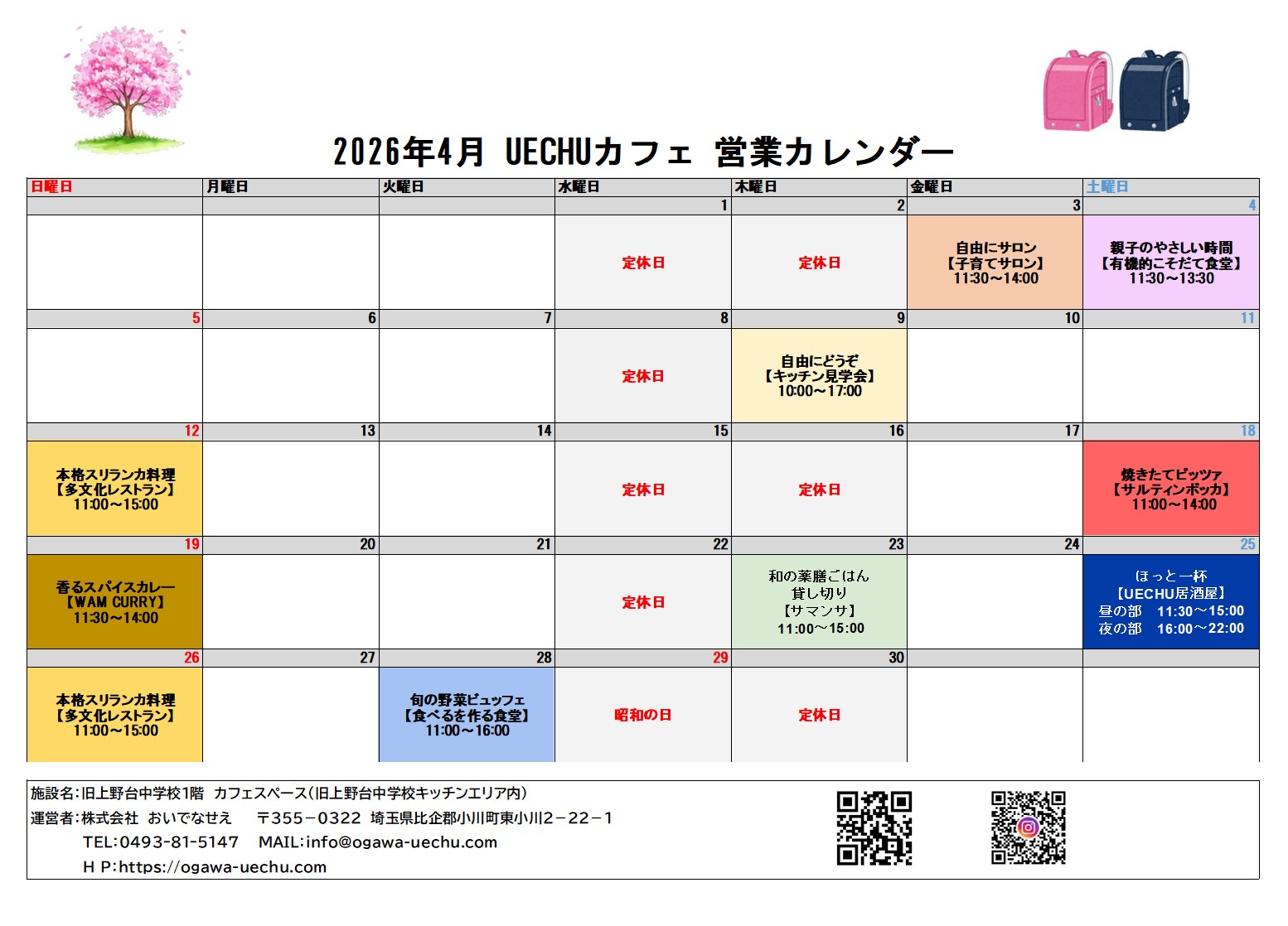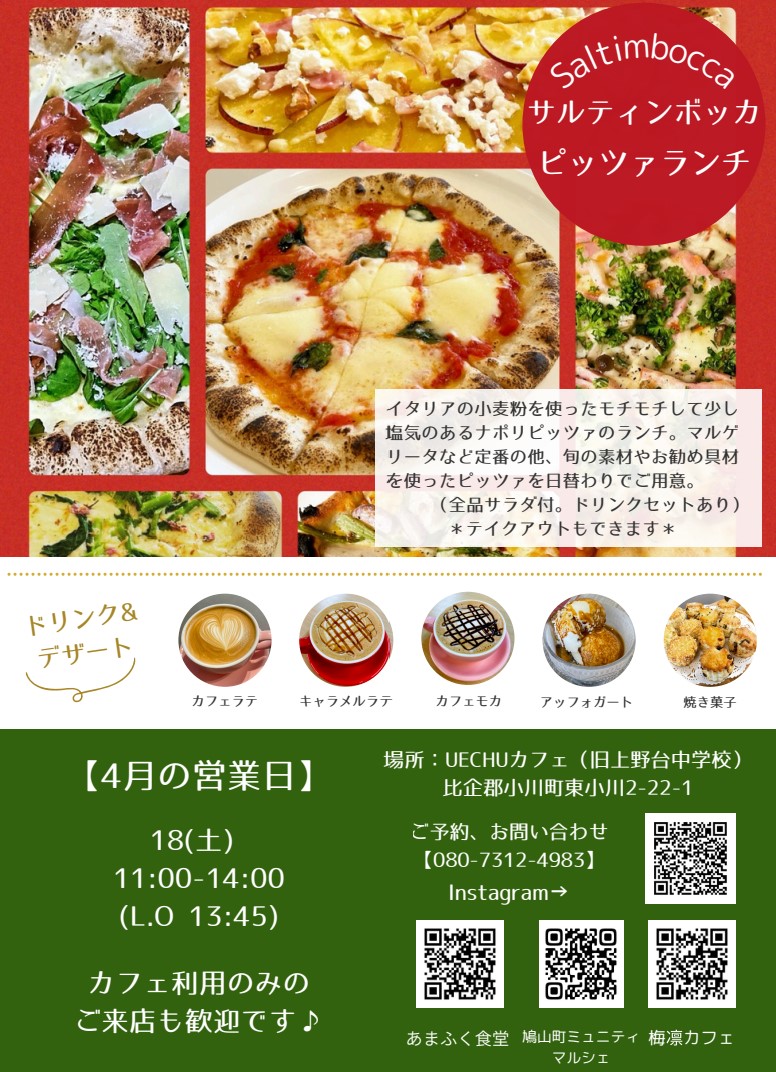 【UECHUカフェ】4月営業カレンダー&出店のご案内